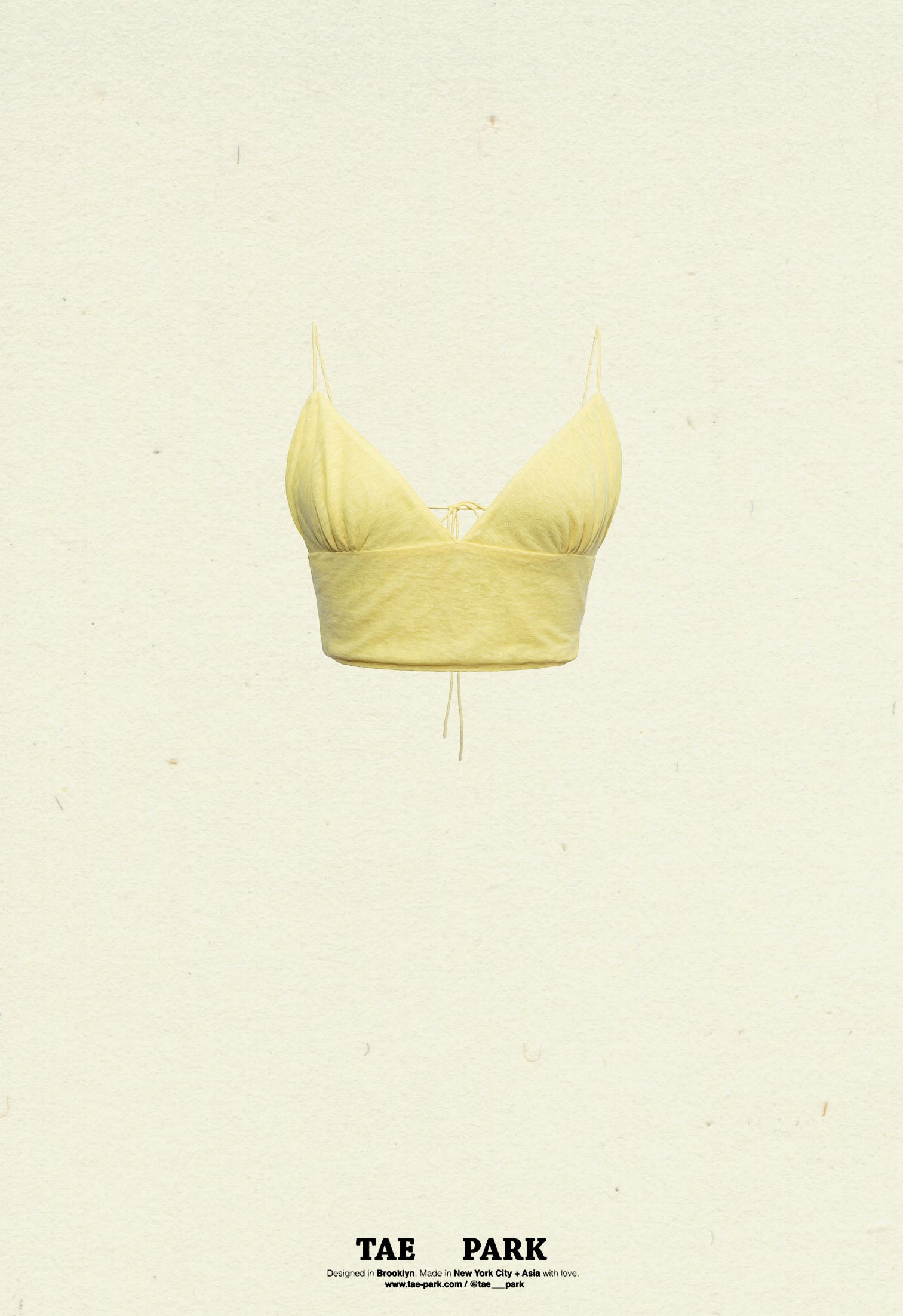 Made with elevated linen knit. Double-lined for bra-free comfort. Linen knit's dense structure and durability provides support. Cropped fit. Clean finished. Small gathering at bust with adjustable shoulder strap at back with dainty linen cording.