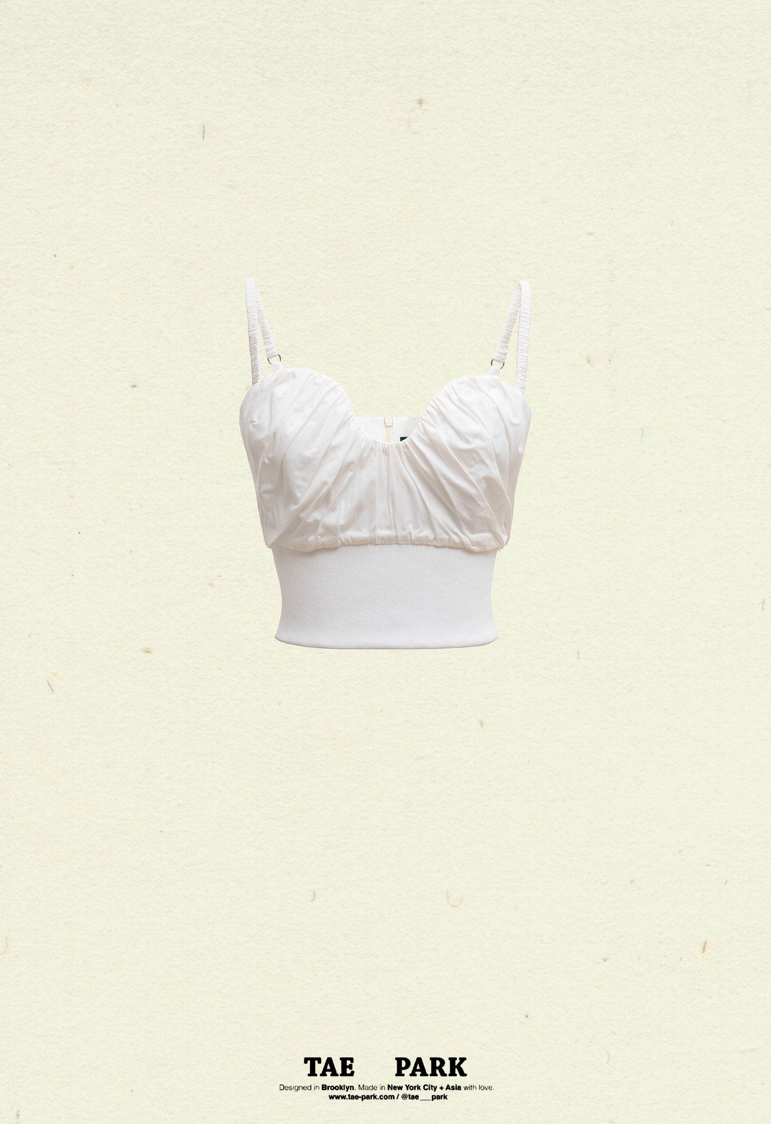 Aphrodite inspired; double lined corset tank with hidden boning pairs at front, side and back. Handmade scrunchie straps with decorative silver ring and bra slider at back for adjustable feature. U shape opening at front for a flattering neckline with puffy draped details. On-fold cotton rib panel at waistline for optimum comfort. Invisible zipper at center back for closure.