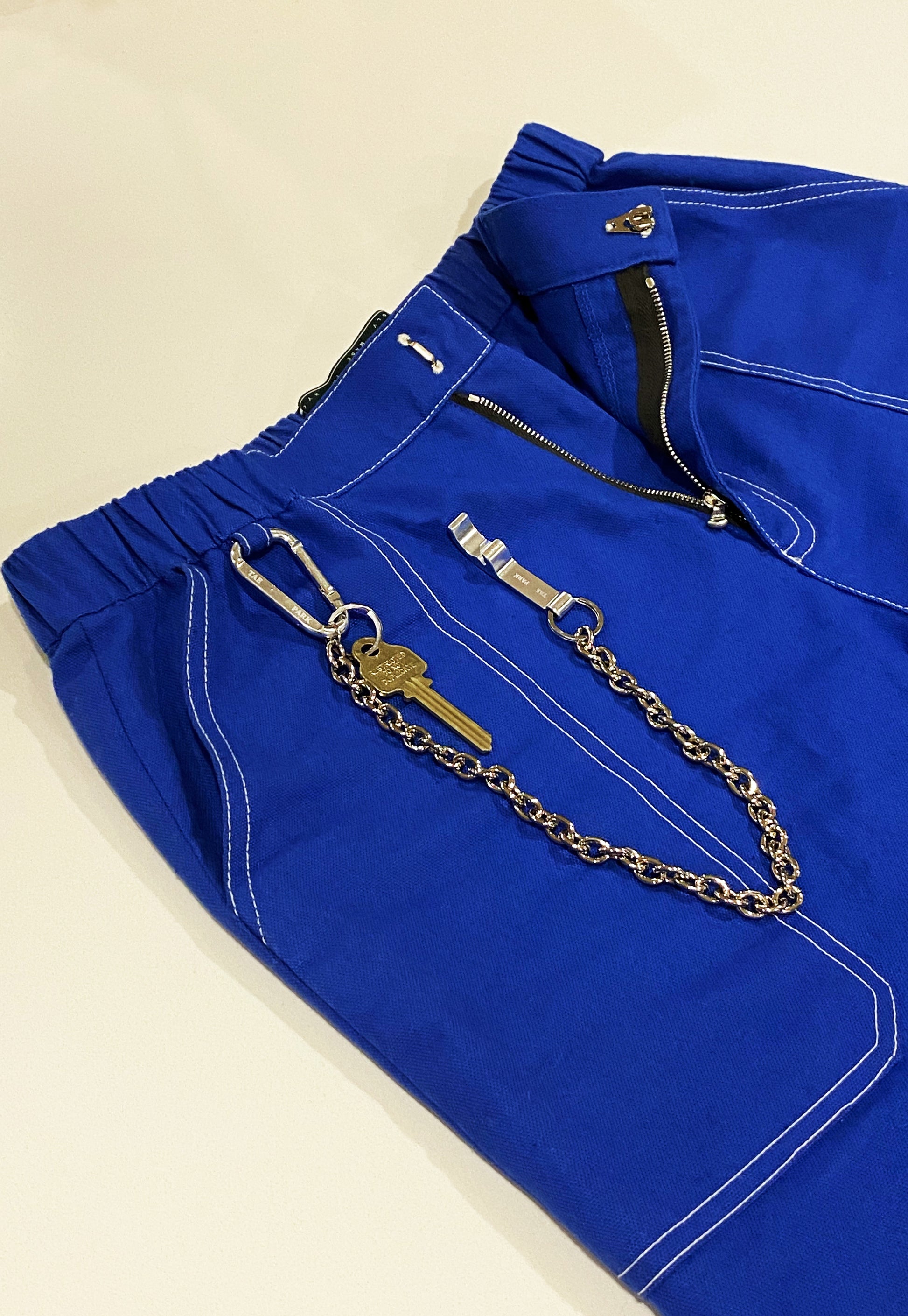 Each pair of pants comes with custom Tae Park silver carabiner clip attached with silver chain link and custom Tae Park silver bottle opener. This embellishment truly represents the ethos of a Brooklyn girl. Cheers.
