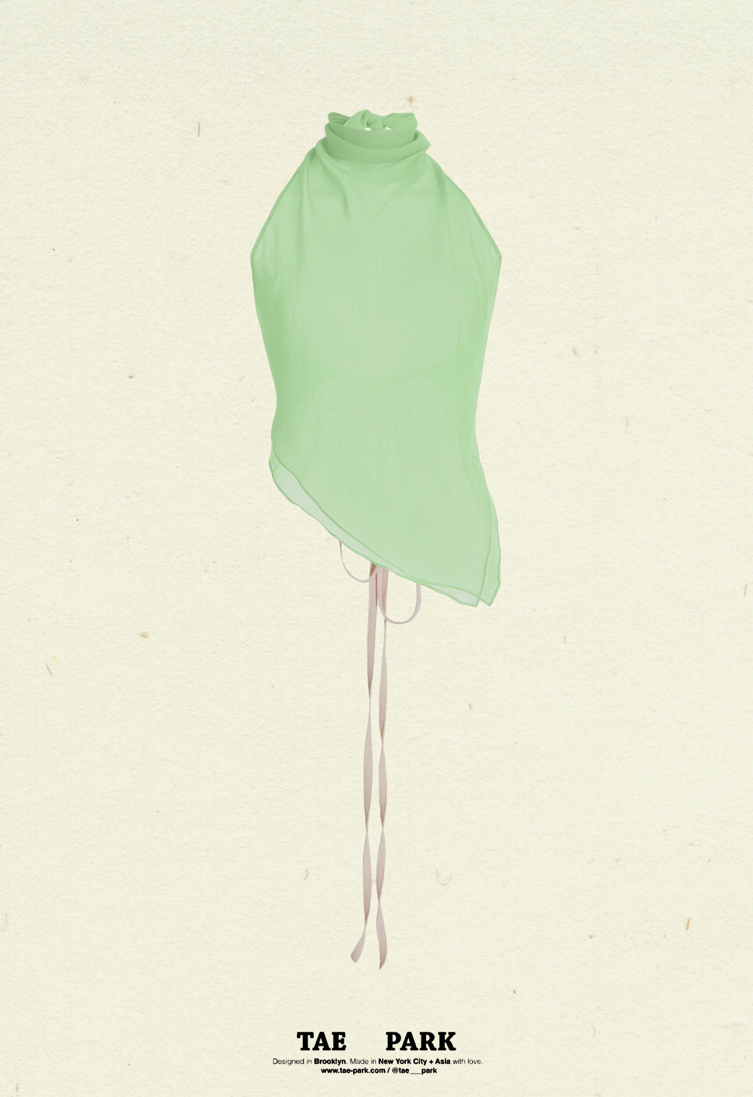 Double-lined in Silk Chiffon. Elongated natural cotton twill ties resembling a flying kite. Cowl neckline with self adjustable tie. Baby hem finishing.