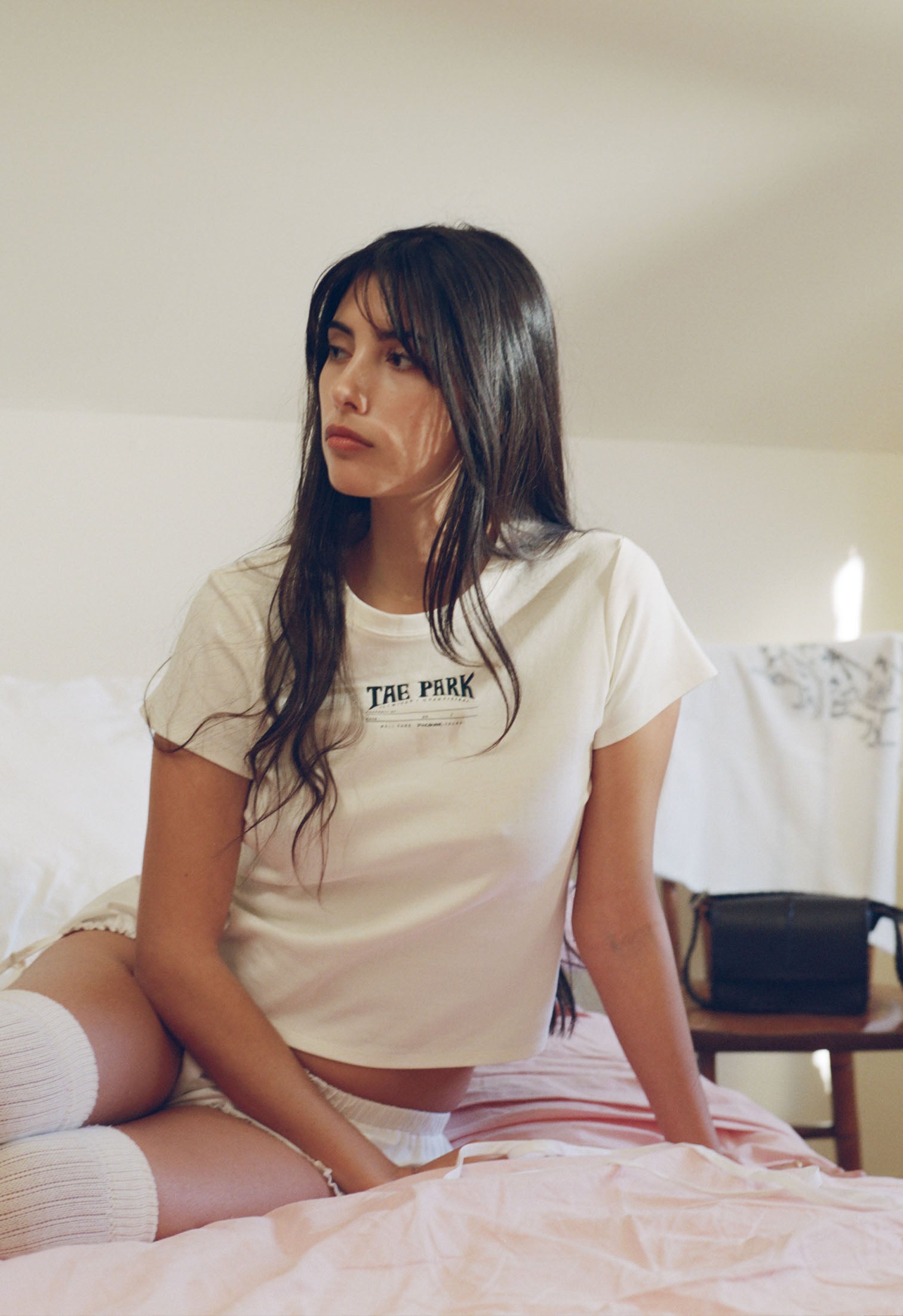 Made from pure cotton jersey, our TP Limited Quantities Baby Tee features clean lines with sporty ease. This soft crewneck tee is designed for a slightly shrunken fit. Fabric base comes in cream to evoke a vintage look and feel.